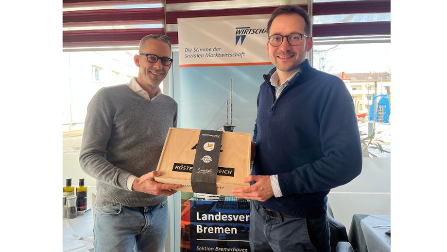Beim Business Lunch in Bremerhaven begrüßte Sektionssprecher Philipp von der Heide Bremerhavens Baustadtrat Maximilian Charlet. Seit etwa einem Jahr ist Charlet für die Stadtentwicklung zuständig. Welche Herausforderungen ihm dabei begegnet sind und welche Vorhaben er verfolgt, durften die Mitglieder beim Lunch im Ristorante Scala erfahren.